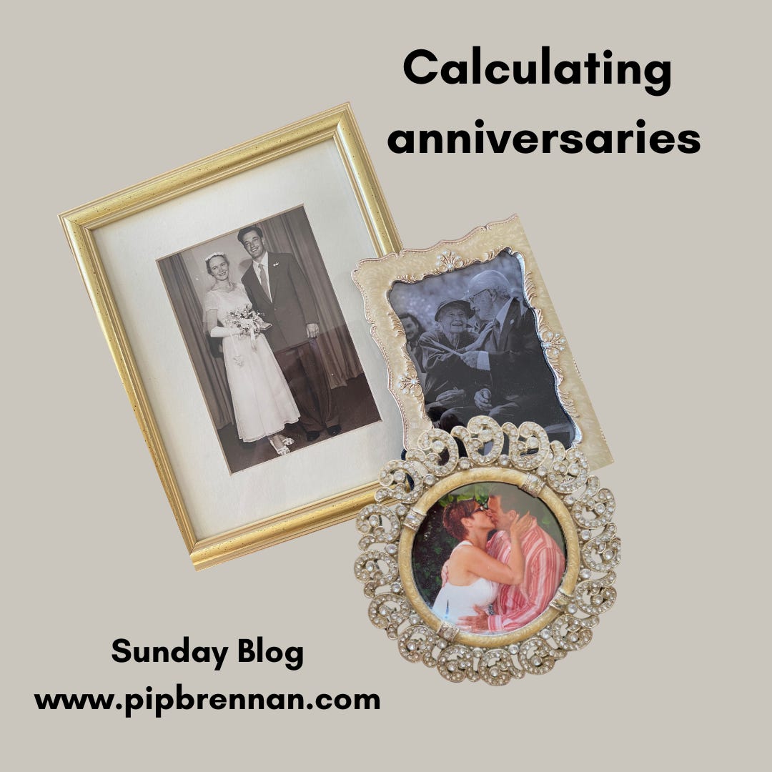 Our wedding anniversary is five days after my parents' who celebrated their wedding on a scorching day in January 1957 (see pic top left.) They'd been married for 63 years when the picture of them was taken at their granddaughter's wedding (see pic in the middle). That was the last year of their marriage, as he died in October of that year.