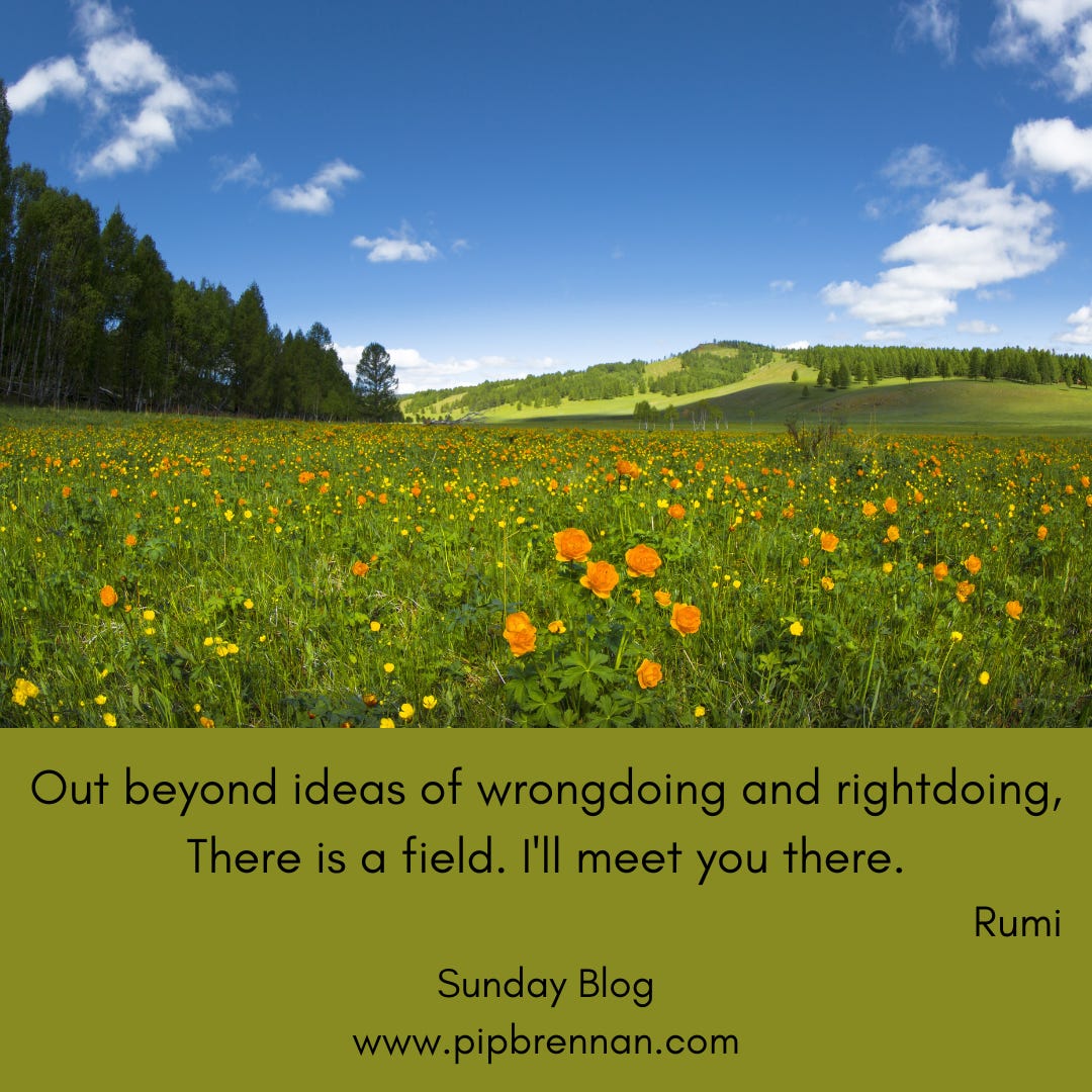 So in that field, beyond ideas of wrongdoing and right doing, beyond social media and its economic model to engender and encourage arguments between us, I'll meet you there.