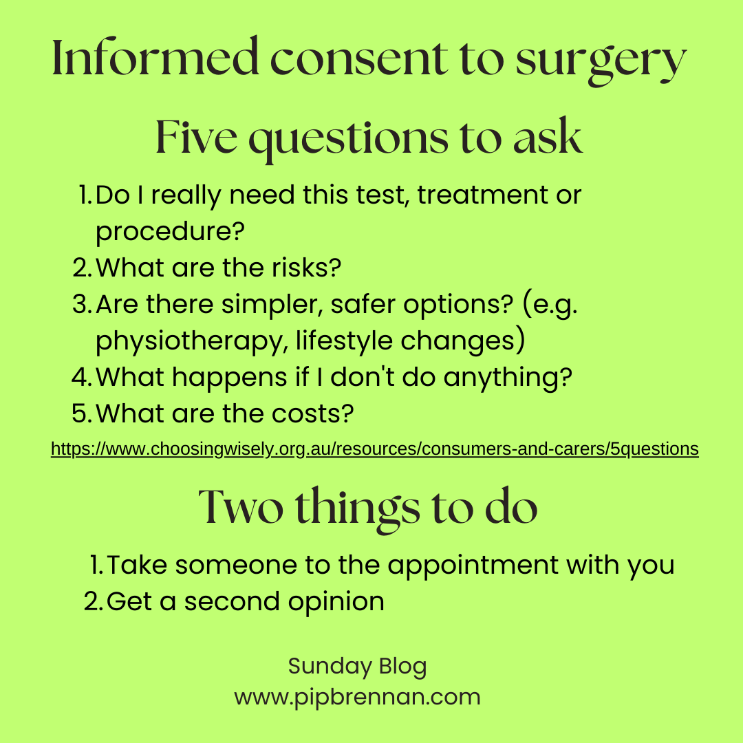 It all starts with us as patients giving informed consent. But how do we manage the yawning gap of medical knowledge between our surgeons and ourselves? How can we ask the right questions when we don’t know what we don’t know?