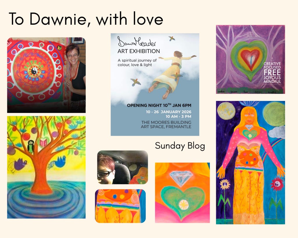 Dawnie, you always brought so much joy and fun to your classes. And your artworks are sublime. Thank you again. You were a one-off.